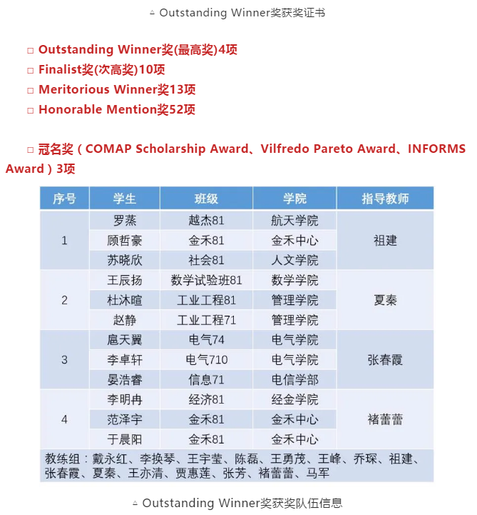 参赛队伍在全球20948支队伍中脱颖而出,获奖数量创历史最好成绩!Outstanding Winner奖获奖数量位列全球第一,冠名奖获奖数量位列全球第一。我院学子罗蒸及其参赛组获得最高奖Outstanding Winner奖。