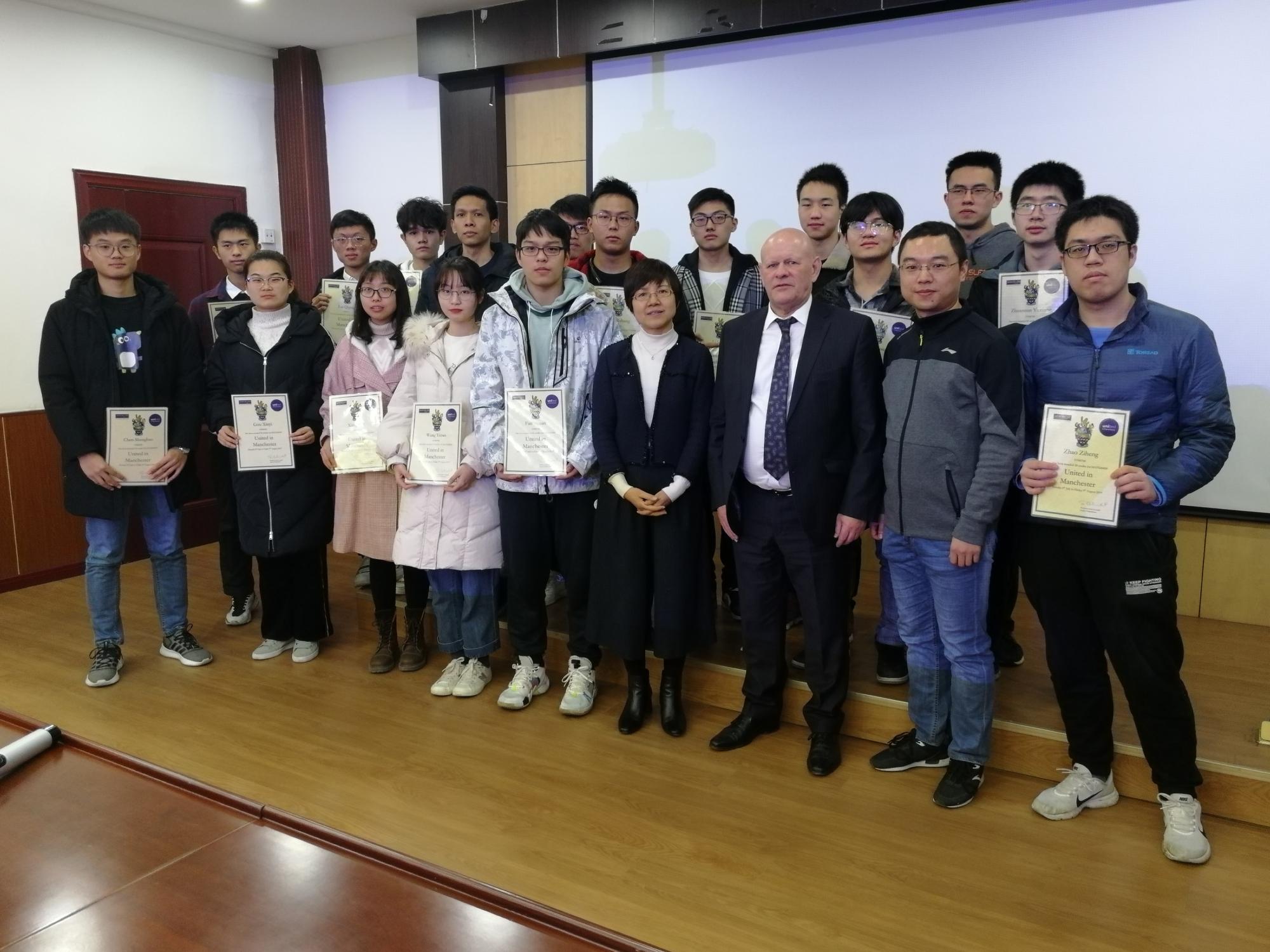 最后,吴莹院长和Paul Cowell共同为参加2019年暑期学校的每位同学颁发了曼彻斯特大学的学分认可证书。 Paul Cowell寄语获得证书的同学们努力学习,将来成为曼大的知名校友,成为曼大和西交大的骄傲。