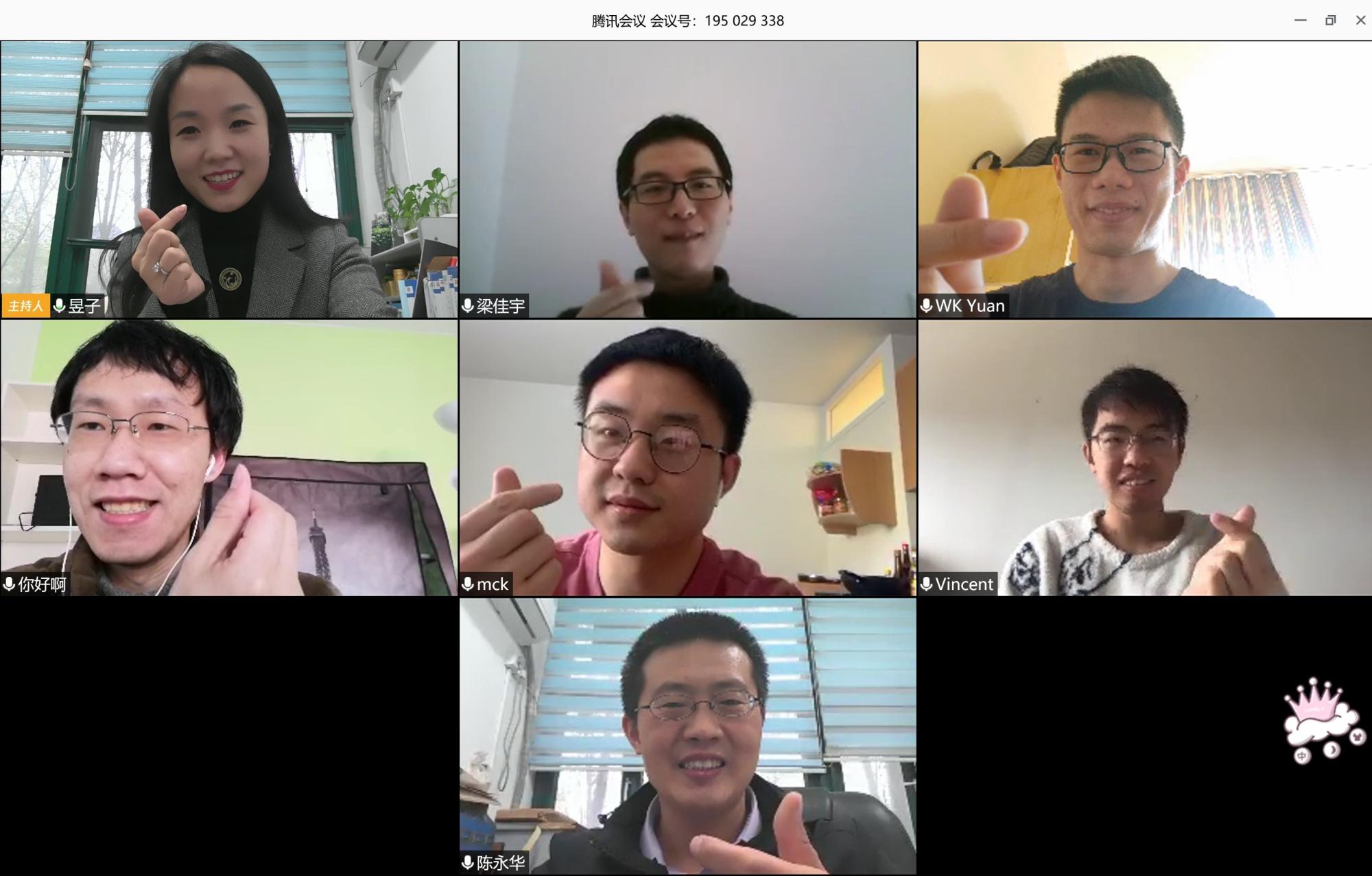 由于时差的原因,座谈分为两场举行。上午9:00与身在美国、加拿大的同学们交流。下午16:30与身在英国、法国、德国、新加坡、西班牙、奥地利的同学们进行了交流座谈。同学们发言踊跃,大家顺次描述了各自所在国家和地区的疫情形势、科研学习生活情况以及下一步计划。身在加拿大的博1712班陈志强谈道,“在疫情导致的恐慌氛围下,学院的关心嘱咐让人感受到了温暖和依靠。亲眼目睹国内外差异性的应对举措,更是让人深切体会到祖国在重大灾难面前的力量。面对肆虐的病毒,我们会提高警惕,加倍小心,期待早日回到祖国的怀抱。” 身在美国的博1811班施梅璇子表示,“身在异国他乡,能多次接收到学校的关怀,知道学校一直都记着我们。我作为湖北籍的留学生觉得十分温暖,也为自己是交大的一份子而自豪。留学期间,我将会遵从学校的建议,以静制动。积极采取防护措施,减少外出。也希望国内外的同学老师们都能身体健康,一起成功战‘疫’。”身在英国的博1638班的小超表示:“英国的疫情越来越严重,但前期也做了相应准备,口罩、手套和食物等必需品充足。学校虽然关闭,但是我们可以在家远程办公,科研所受影响不大。整体情况良好,请学校和学院放心!”身在新加的博1712班李珍说道:“新加坡疫情防控比较早,目前主要输入性病例较多,本地主要是几个感染群,没有出现很明显的社区感染。现在出门做好防护,基本上还可以来学校、正常生活。出门购物基本不会受到影响,物价正常,食物也没有短缺。感觉做好防护措施和保证良好的心态十分重要。也特别感谢特殊时期,来自各位师长的关心和问候。”座谈中同学们也提出了一些回国手续等相关问题,老师们都做了一一解答和引导。李昱静老师提醒同学们在境外做好自身防护的同时,务必加强和当地使领馆的联系,遇到问题或者需要什么帮助及时学校老师联系,以便妥善解决。