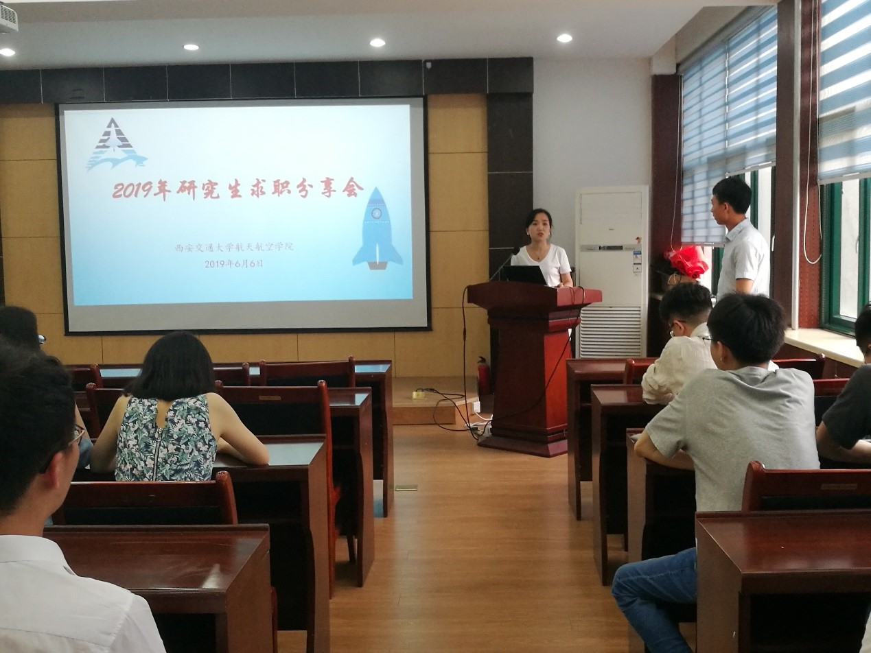 6月6日晚上,由航天学院研究生会举办的2019届研究生求职分享会在航天学院第五会议室成功举办。航天学院研究生辅导员李昱静老师出席活动。