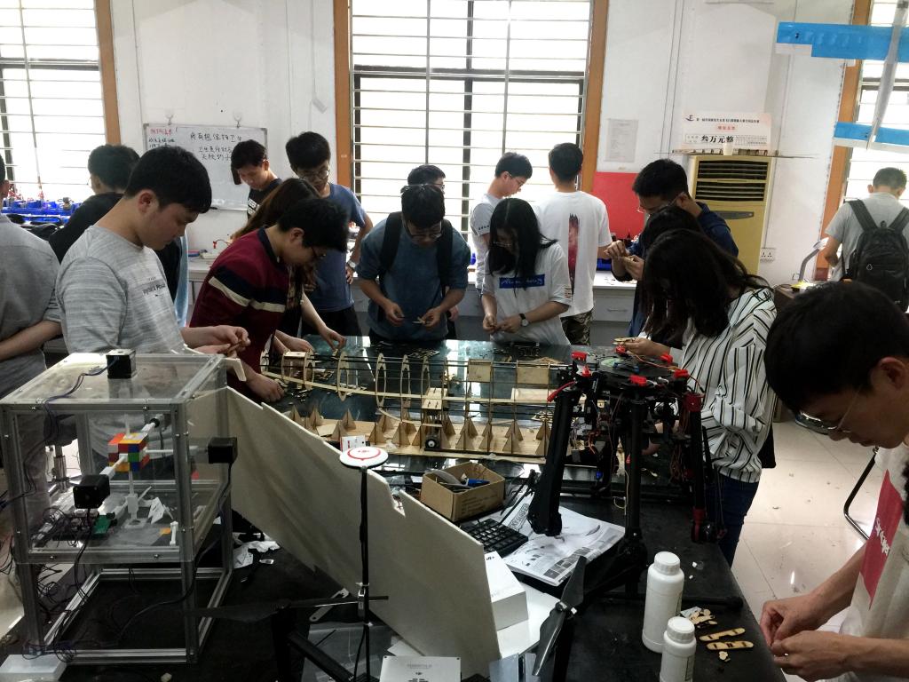 在智能飞行器俱乐部,同学们体验动手制作纪念飞行器模型,选取waco机型为原型机,利用事先准备好的CAD图纸,进行原材料切割、组装和固定。 “航天航空的课程大都停留在了理论阶段,今天在智能航天器俱乐部的参观和动手实践,跟大家交流了许多控制方面遇到的问题,受益匪浅。”硕8066班韩修远谈道。