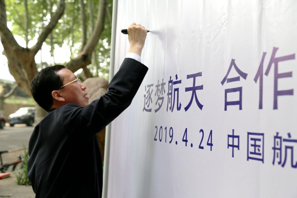 在启动仪式上,各位领导、嘉宾、老师和同学们在签名墙上留下了对中国航天事业发展的美好愿望。