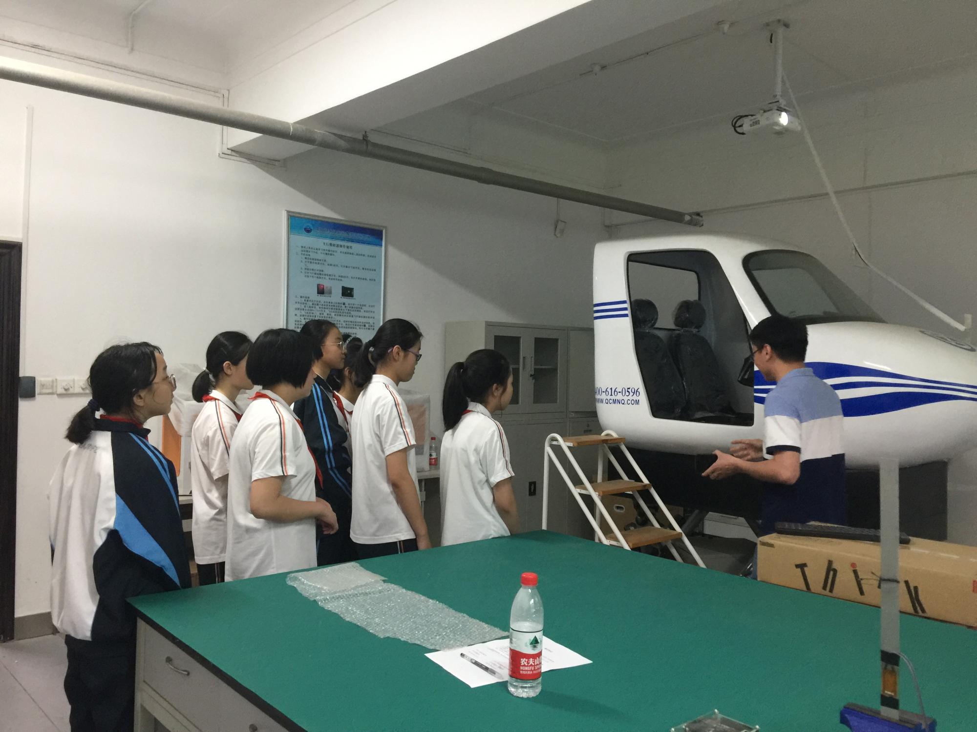 第一次见到风洞试验,同学们目不转睛的看着由于不同来流速度下试验段机翼尖端的涡流的变化。飞行器模拟吸引了大家的目光,同学们纷纷尝试“开飞机”的各种操作。