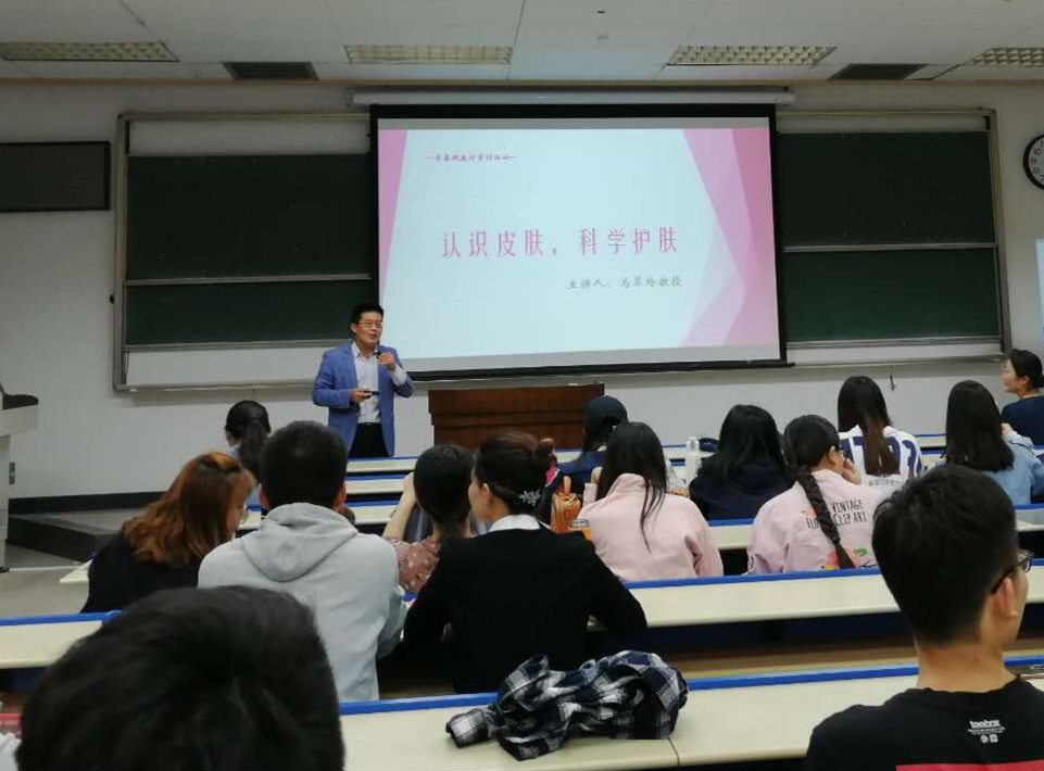马翠玲教授为师生做了题为“认识皮肤、科学护肤”的皮肤健康知识讲座。她首先从人体皮肤结构导入,阐释了皮肤由表皮、真皮、皮下组织三层组成,不同层次皮肤的破坏会造成不同类型与程度的皮肤问题,强调大家要重视皮肤作为人体最大器官的作用,学会从皮肤本身出发寻找皮肤问题的根源。其次,马教授主要从祛斑、除痣、战痘三方面详细分析了日常生活中常见的皮肤问题,帮助大家分辨不同斑痕、痤疮等产生的原因及相应的治疗方式和日常护理方法。随后,马教授结合亲身经历与大家分享了护肤美容的经验体会。她认为皮肤日常护理最重要的是要做好保湿与防晒,同时,她也强调在美容过程中,尤其是进行注射美容时要谨慎小心,充分考虑自身皮肤状态和经济条件,切忌盲目注射。
