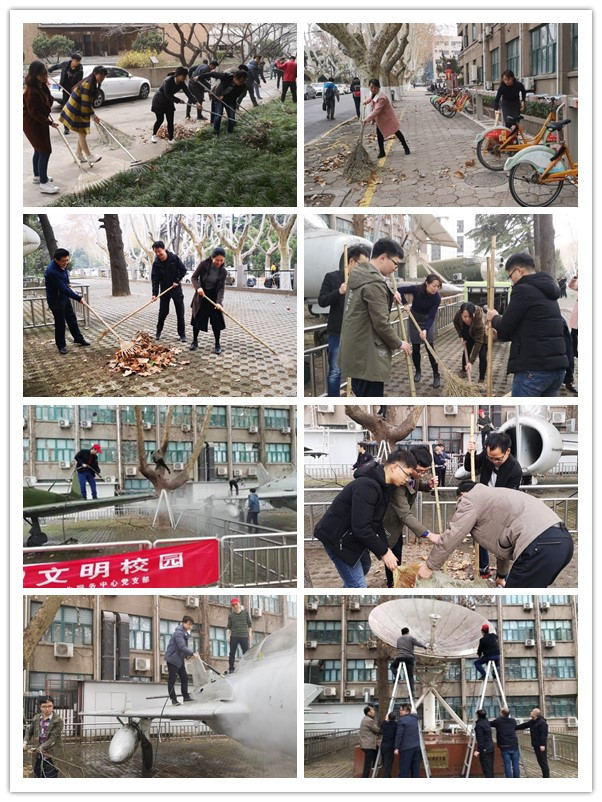 整个清扫活动分为三个板块,学院南草坪,学院东边正门,以及教一楼北边的“停机坪”。三个党支部合理分工,密切合作,在各自负责的区域清理草坪的落叶;冲洗、擦拭“停机坪”上飞机的灰尘;擦拭栏杆等等,在大家的共同努力下将学院周边环境清扫一新。