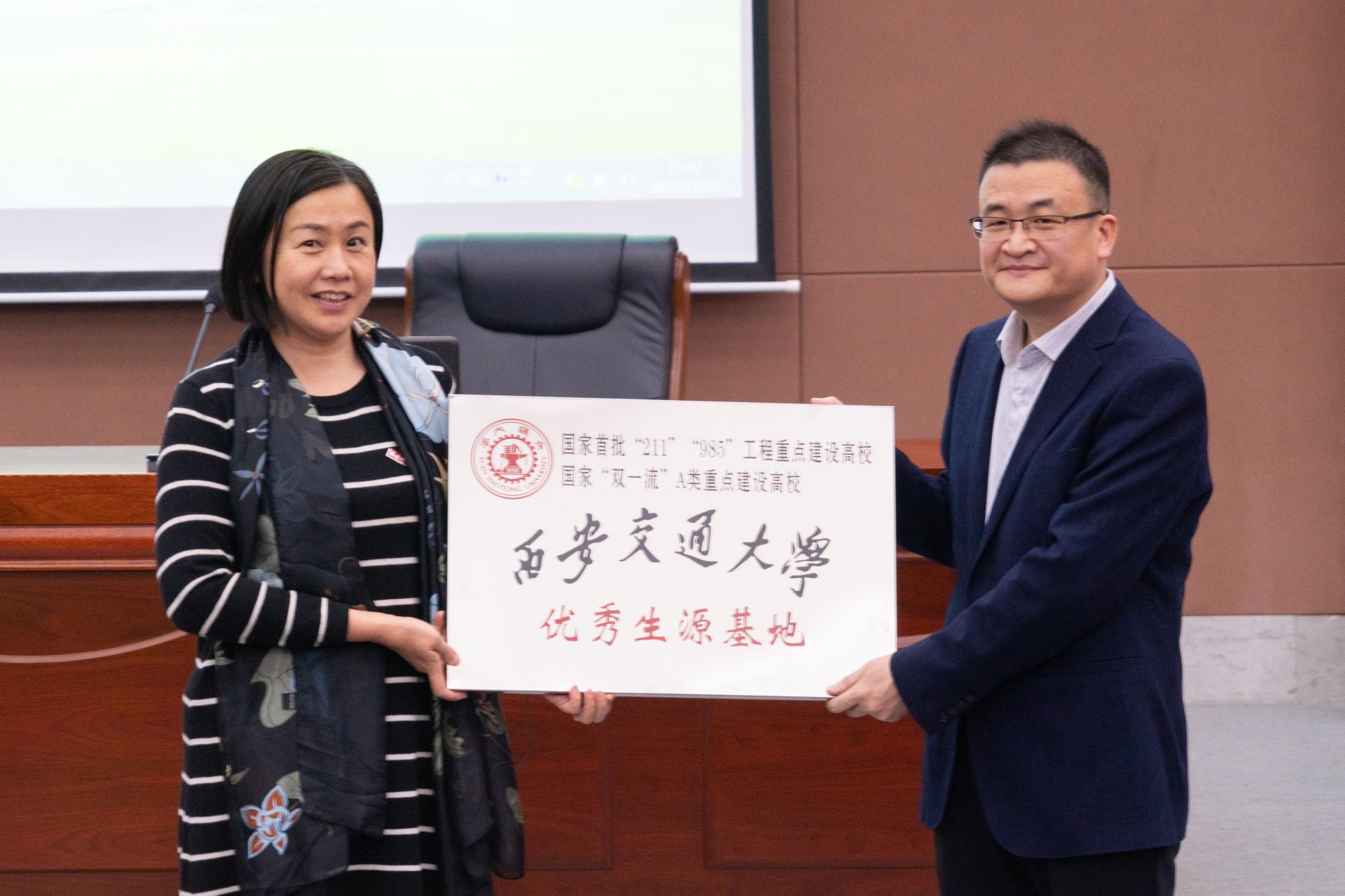 优秀生源基地授牌仪式在福建师大附中报告厅举行。航天学院院长申胜平教授代表学校向师大附中主管教学副校长阮云进行了授牌,航天学院党委副书记、福建招生组组长陈永华代表学校宣读了学校《优秀生源基地授牌决定》的文件,双方代表在热烈的掌声中签订了优秀生源基地协议。福建师范大学附属中学是福建省首批省级示范性普通高级中学,是福建省首批办好的重点中学之一,近几年师大附中连续为交大输送了大批优秀学子。今后两校将加强双方在教学信息、办学理念等方面的交流,更好地促进高中教育和高等教育的衔接。