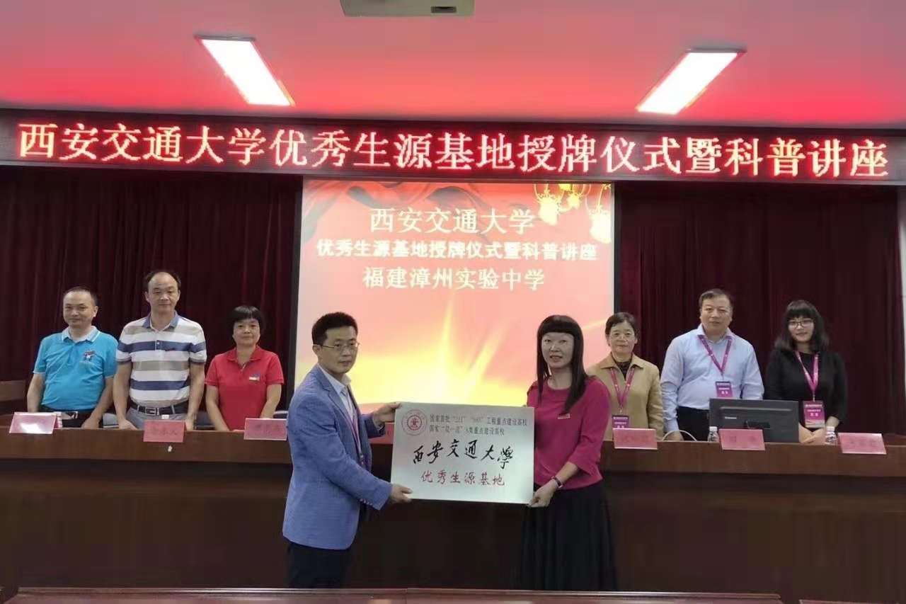 优秀生源基地授牌仪式在漳州正兴学校报告厅举行。航天学院党委副书记、福建招生组组长陈永华代表学校向漳州正兴学校校长朱金海进行了授牌并签订优秀生源基地协议。航天学院福建招生组副组长陈玲莉教授代表学校宣读《优秀生源基地授牌决定》并致辞。漳州正兴学校近年向色情网