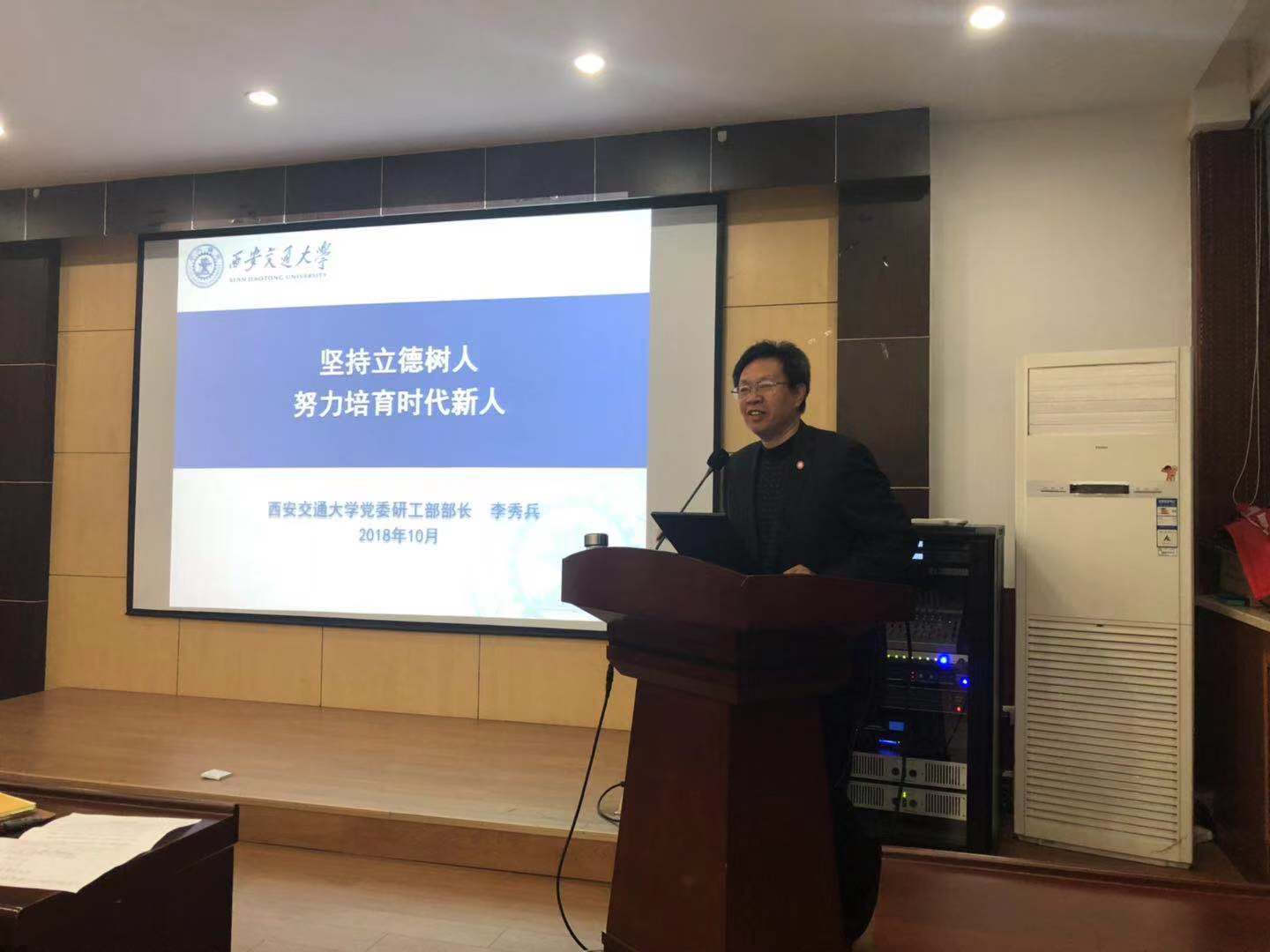 2018年10月25日,为了践行爱国奋斗精神,提升研究生党支部人才培养质量,培育新时代人才,助力“双一流”建设。航天学院邀请党委研工部部长、研究生院李秀兵副院长在第五会议室为全体研究生党员做了题为“坚持立德树人,努力培育时代新人”的报告。会议由色情网