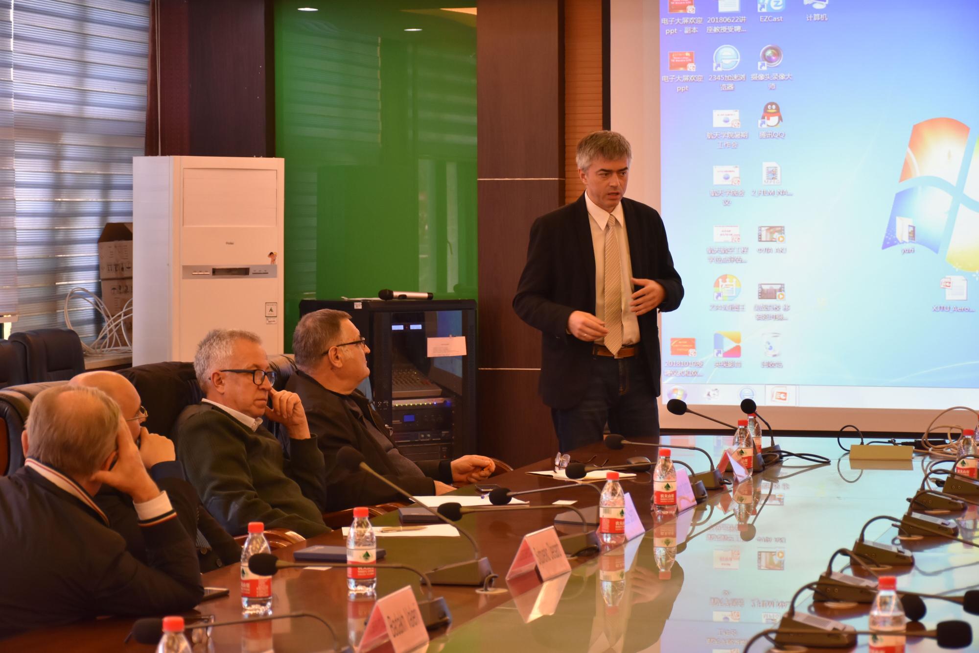 院长申胜平教授、副院长李跃明教授、副院长吴莹教授等领导、院长助理陈刚教授、空天工程系主任刘振副教授等与乌克兰代表团一行进行了首次会面。双方介绍了各自学校和学院的基本情况,并就合作项目意向进行了初步交流。随后,乌克兰访问团一行参观了机械结构强度与振动国家重点实验室。