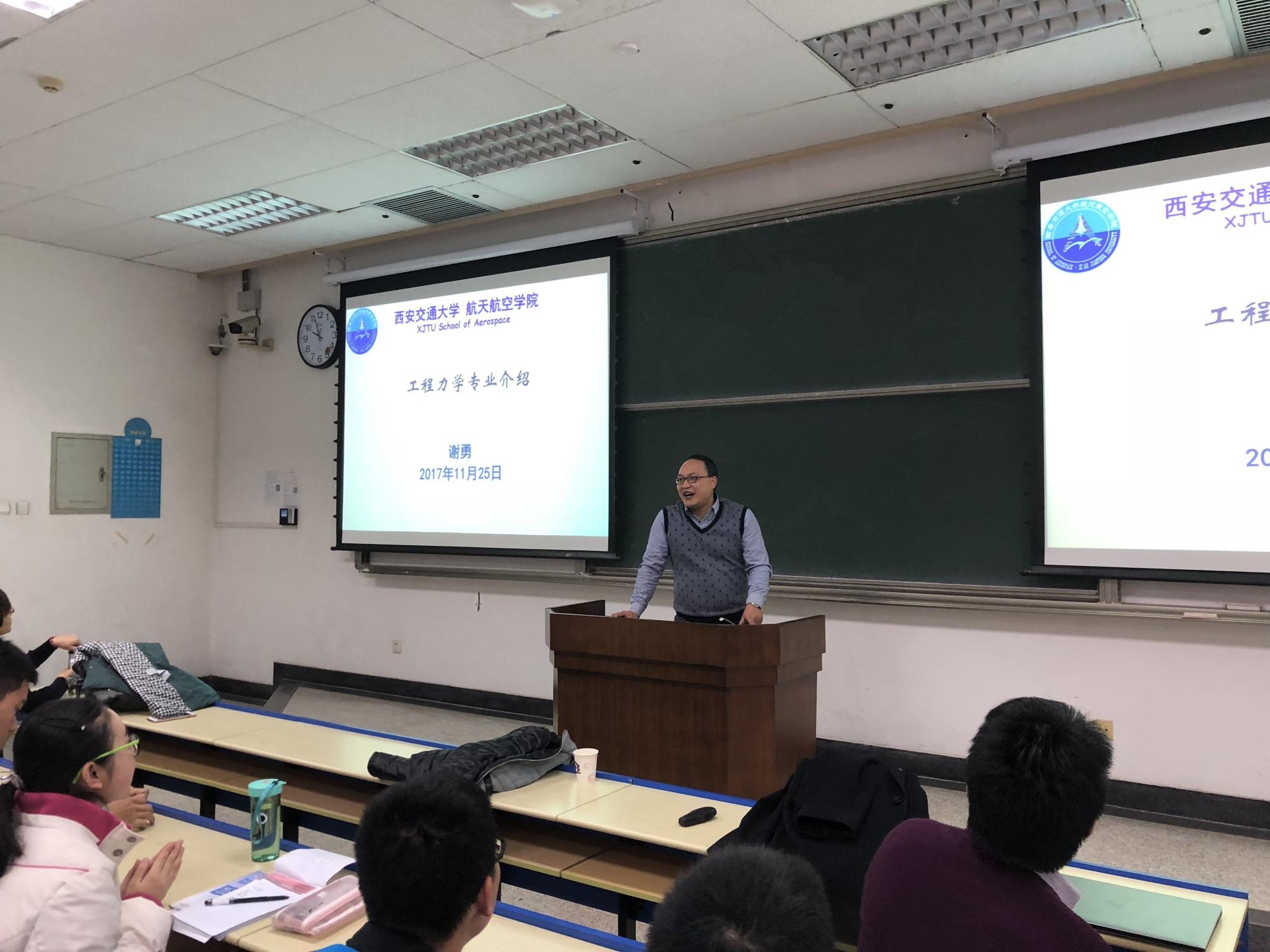 的力学专业历史悠久,学科实力在全国名列前茅。为进一步增进学生对力学的认识,谢勇老师还详细介绍了力学的主干课程及力学的研究对象。最后,谢勇老师热切期盼大家加入工程力学系共同探讨工程科学的奥妙。