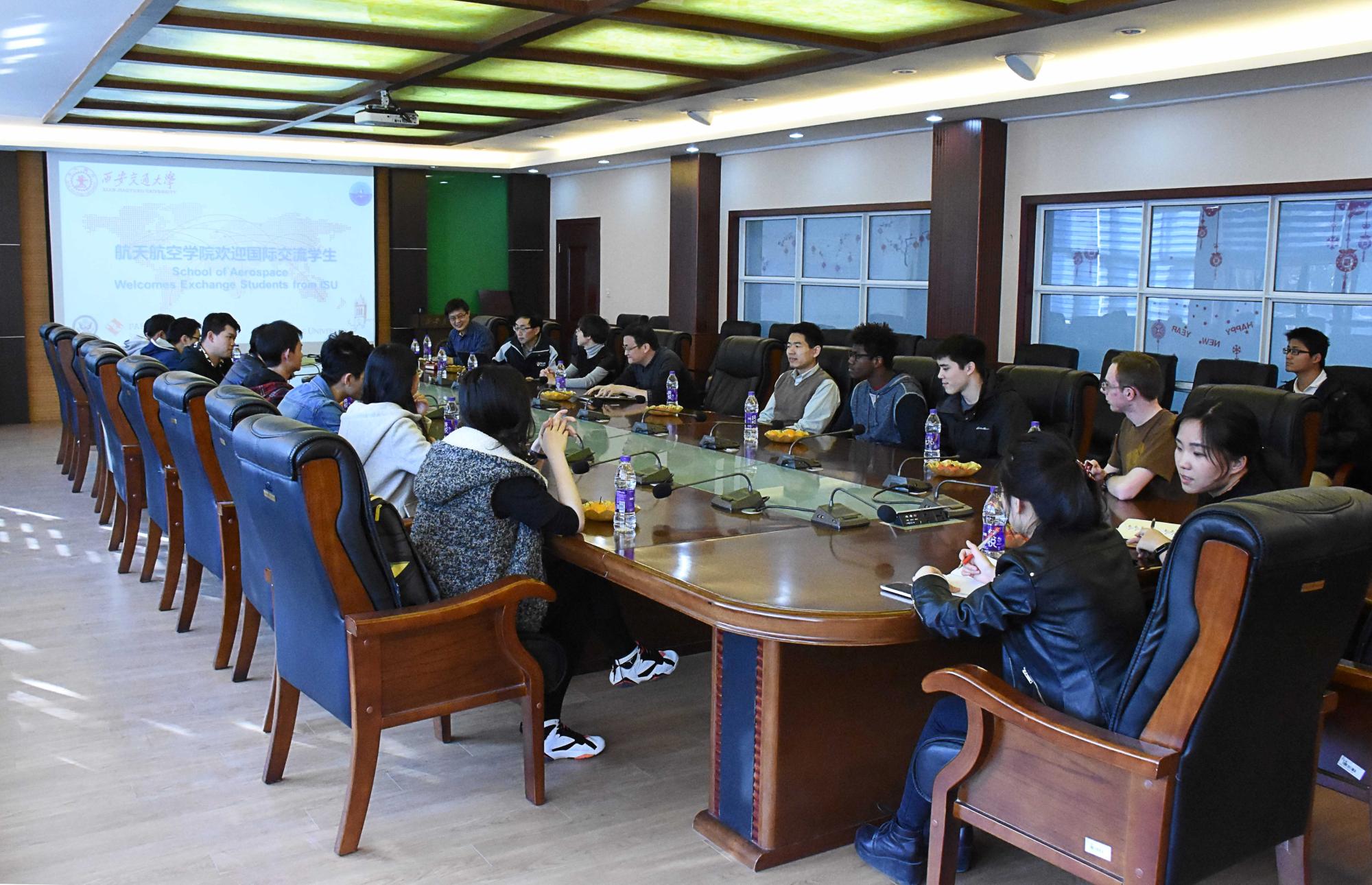 2017年3月3日下午,我院举办了一场轻松友好的国际交换生交流座谈会。出席此次座谈会的有院长申胜平教授,副院长吴莹教授,党委副书记陈永华副教授,国际应用力学中心执行主任刘子顺教授,美国爱荷华州立大学航空航天工程系洪伟副教授,辅导员李昱静老师,美国爱荷华州立大学的三名交流生以及航天学院的10余名本科生。本次座谈会由刘子顺教授主持。