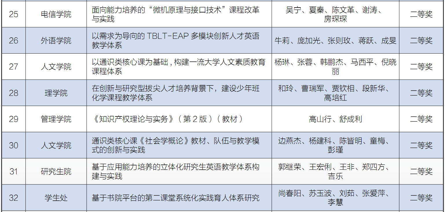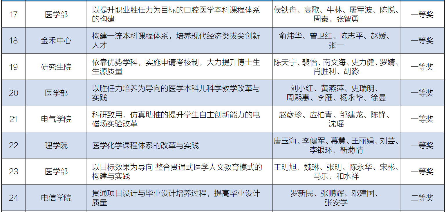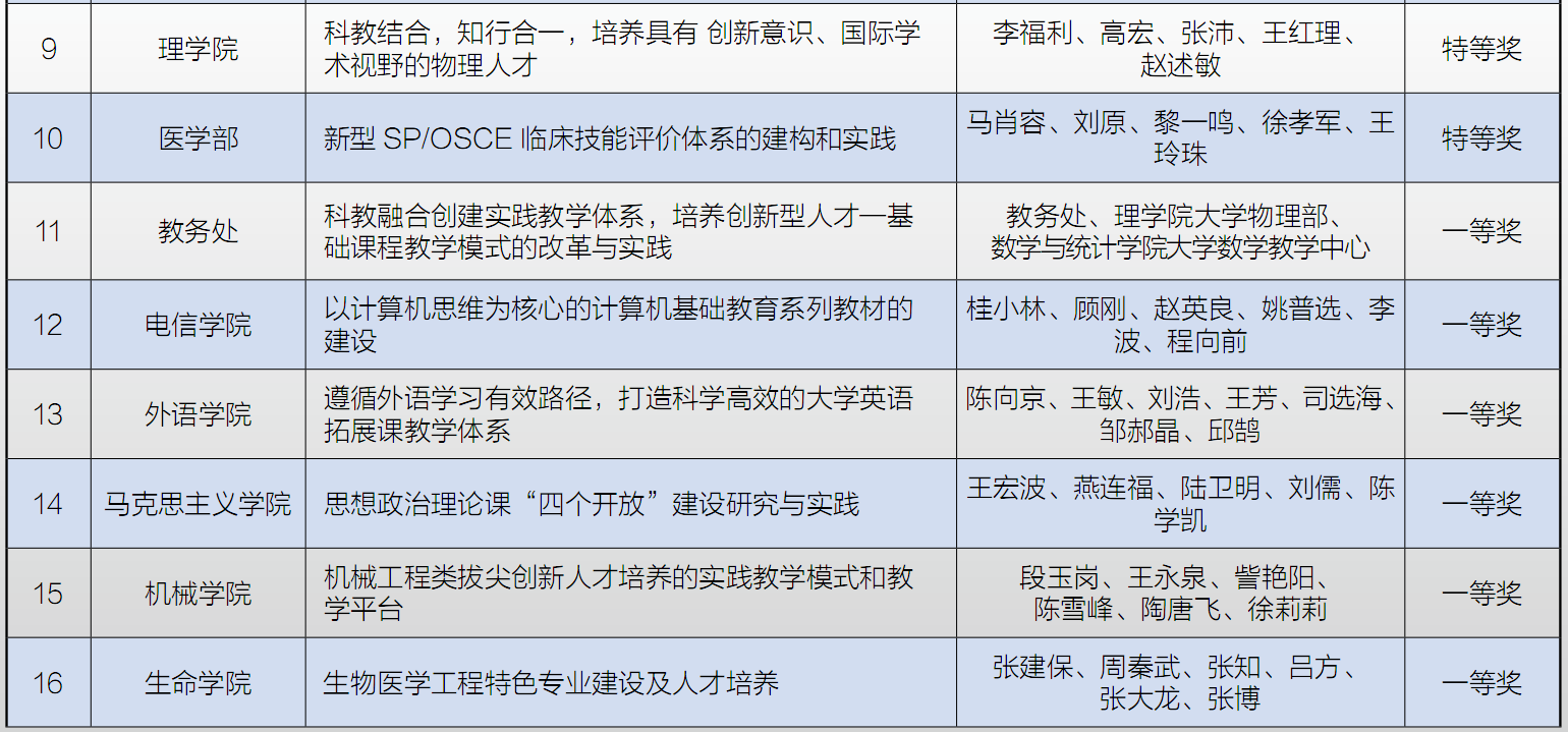 第十四届教学成果奖获奖名单
