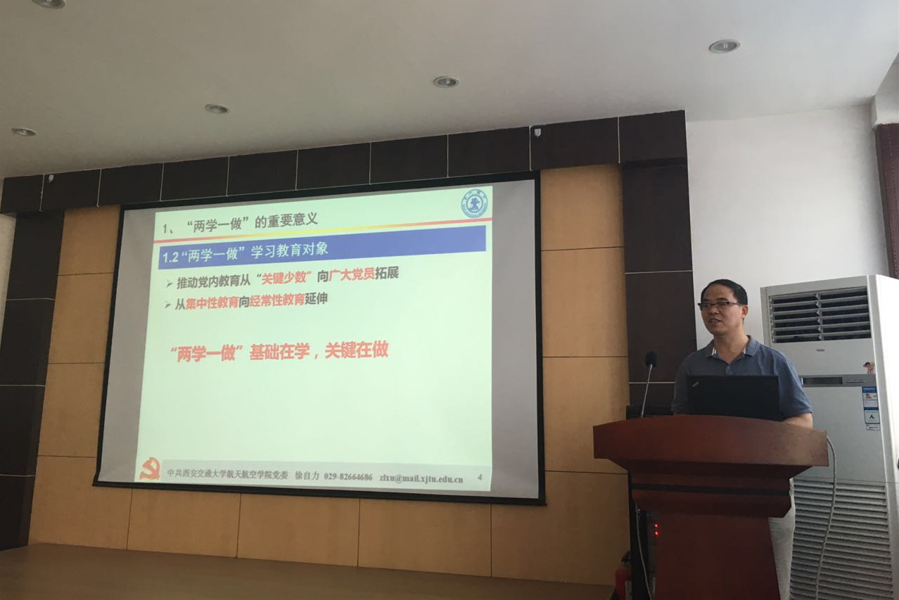 召开了“深入领会‘两学一做’精神,大胆创新,助推双一流建设”党员大会。学校王铁军副校长、学院院长申胜平教授、副书记(主持工作)徐自力教授、分党委委员江俊教授、田晓耕教授及学院全体教工党员和学生党员代表出席了此次会议。