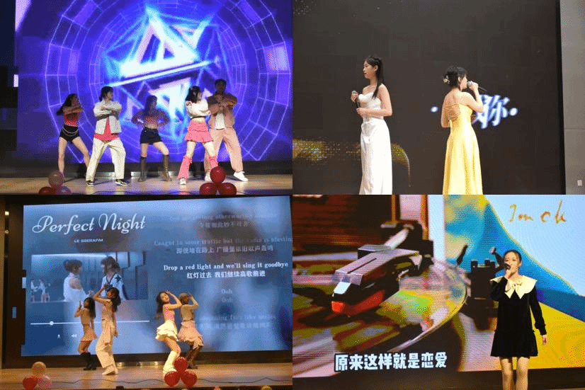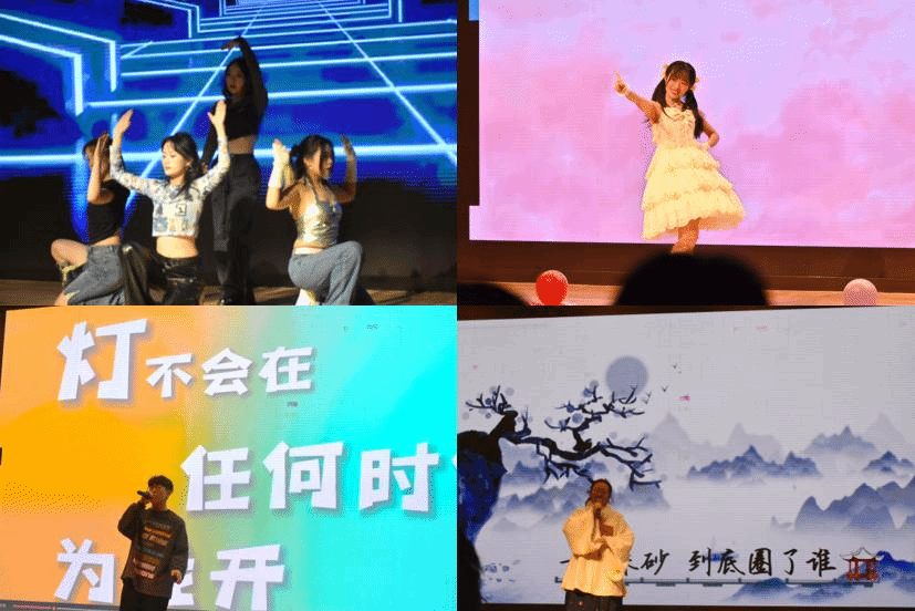 第二阶段元旦联欢会共三个篇章。第一篇章梦想启航,舞蹈《what’s my name》《染上你的颜色》《Perfect night》,激情澎湃的舞姿点燃了全场的氛围。歌曲《不用你猜》《兰亭序》收获了现场观众的热烈掌声。
