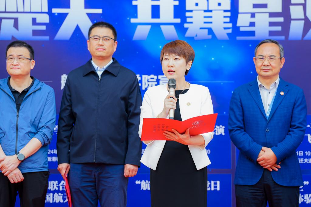 王欢在讲话中表示,68年来,中国航天人秉承自强不息、接续奋斗的精神,在探月、高分、北斗等重大专项取得了圆满成功,2024年中国航天事业迎来了新的里程碑。“中国航天日”是唱响“发展航天事业、建设航天强国”主旋律的重要载体,期待学校、学院牢牢抓住教研一体、学科交叉、产教融合这一战略机遇,在新的平台上继续凝聚力量,团结一致,在服务和融入国家和区域经济社会发展中展现作为,为中国梦、航天梦的实现作出更大的贡献。