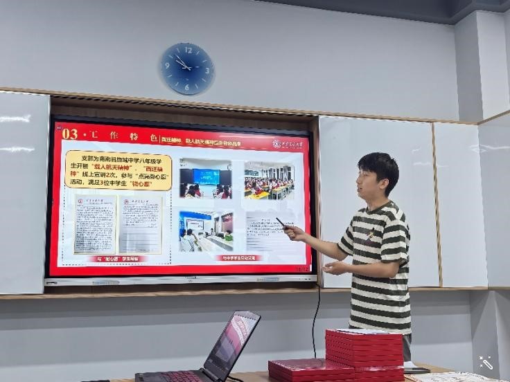 会议第三项,“魅力团支书”获得者杜青阳进行工作经验分享。杜青阳从支部介绍、工作特色、工作成效三个方面出发,以硕2089团支部为例,围绕“铸思想”“强本领”“志愿行”“健体魄”四个维度介绍工作内容,创新思路,发挥优势,引领支部团员全面发展。杜青阳还分享了支部在团日活动的主题确定、环节设计、具体实施、宣传报道等多方面的工作经验,并对团支书个人成长发展提出建议。