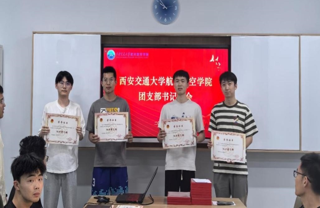 五四评优中获表彰的优秀集体和个人颁发荣誉证书。在此次表彰中,硕1080团支部等5个团支部荣获“红旗团支部”称号;王宁杰获评“共青团工作先进个人”称号;杜青阳获评“魅力团支书”称号;王宏元等5名同学获评“优秀共青团干部”称号;向宇辰等8名同学获评“优秀共青团员”称号。