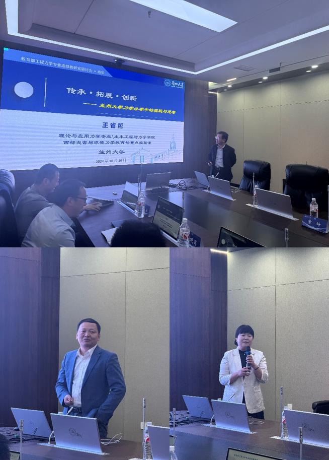 兰州大学王省哲教授、西南交通大学阚前华教授、西北工业大学张娟教授分别作了大会特邀报告。在邀请报告环节,各位嘉宾分别介绍了各单位基础力学课程的建设思路和实践与改革的各种新举措,分享了依托数字化资源探索智慧教学实验模式,交流了基础力学课程教学模式改革的经验,并进一步对基础力学教学工作提出了宝贵意见。