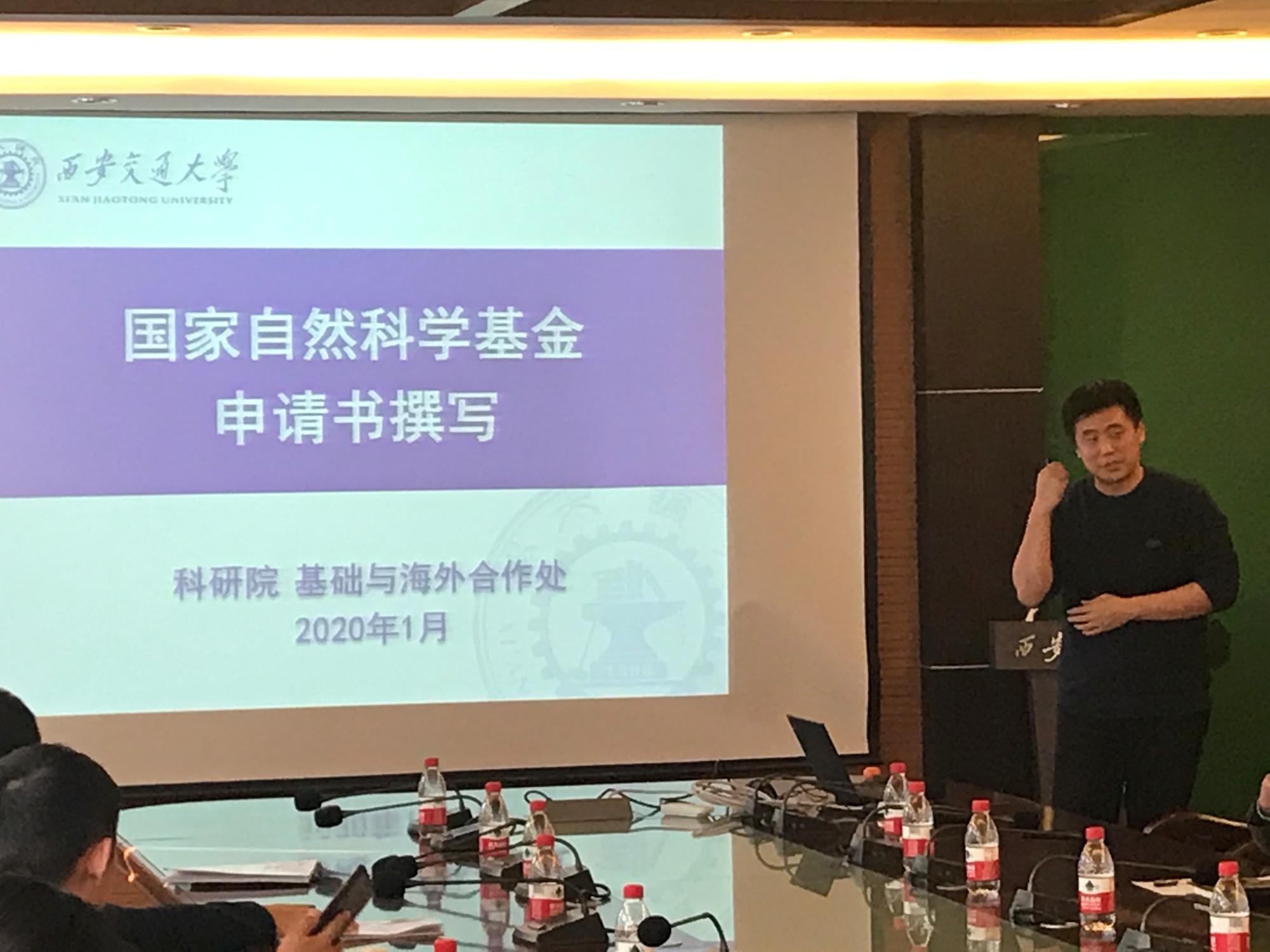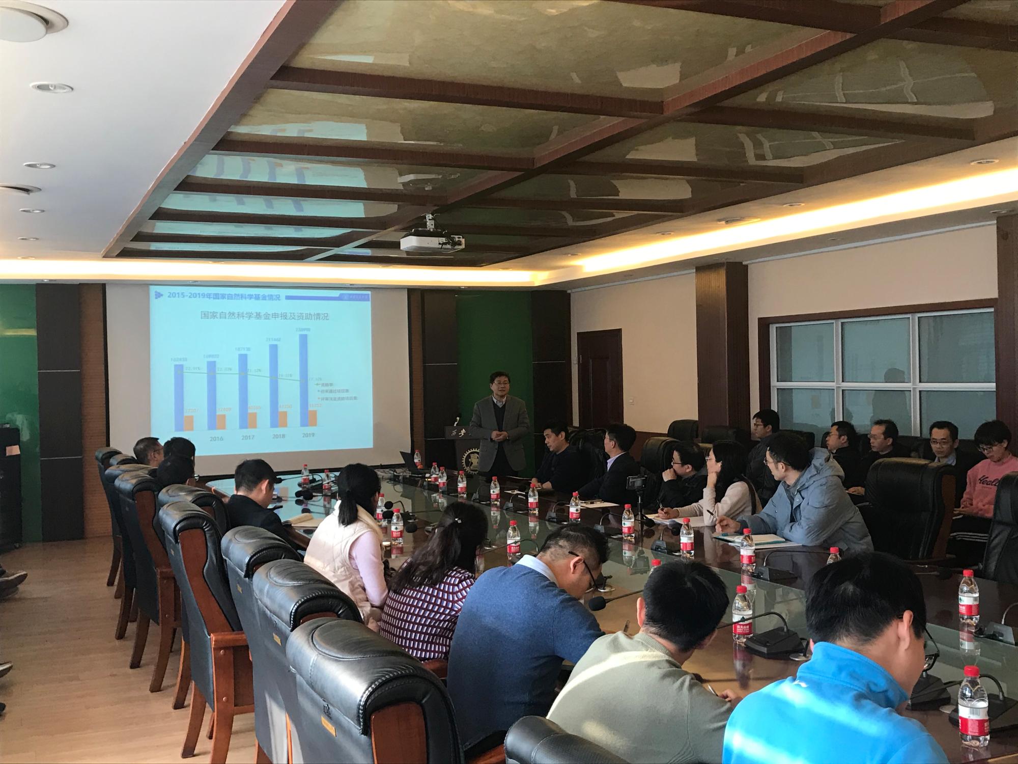 刘永忠副院长首先介绍了2019年学校和学院基金申请、资助情况及2020年基金申报新的国家政策,梳理了学院在“十三五”期间基金资助情况。肯定了学院在“十三五”期间基金资助获得的成绩,同时也指出了学校在“十四五”期间基金项目申报的努力方向,希望学院“十四五”期间,能够在创新群体、重大项目、人才项目有更大的突破。