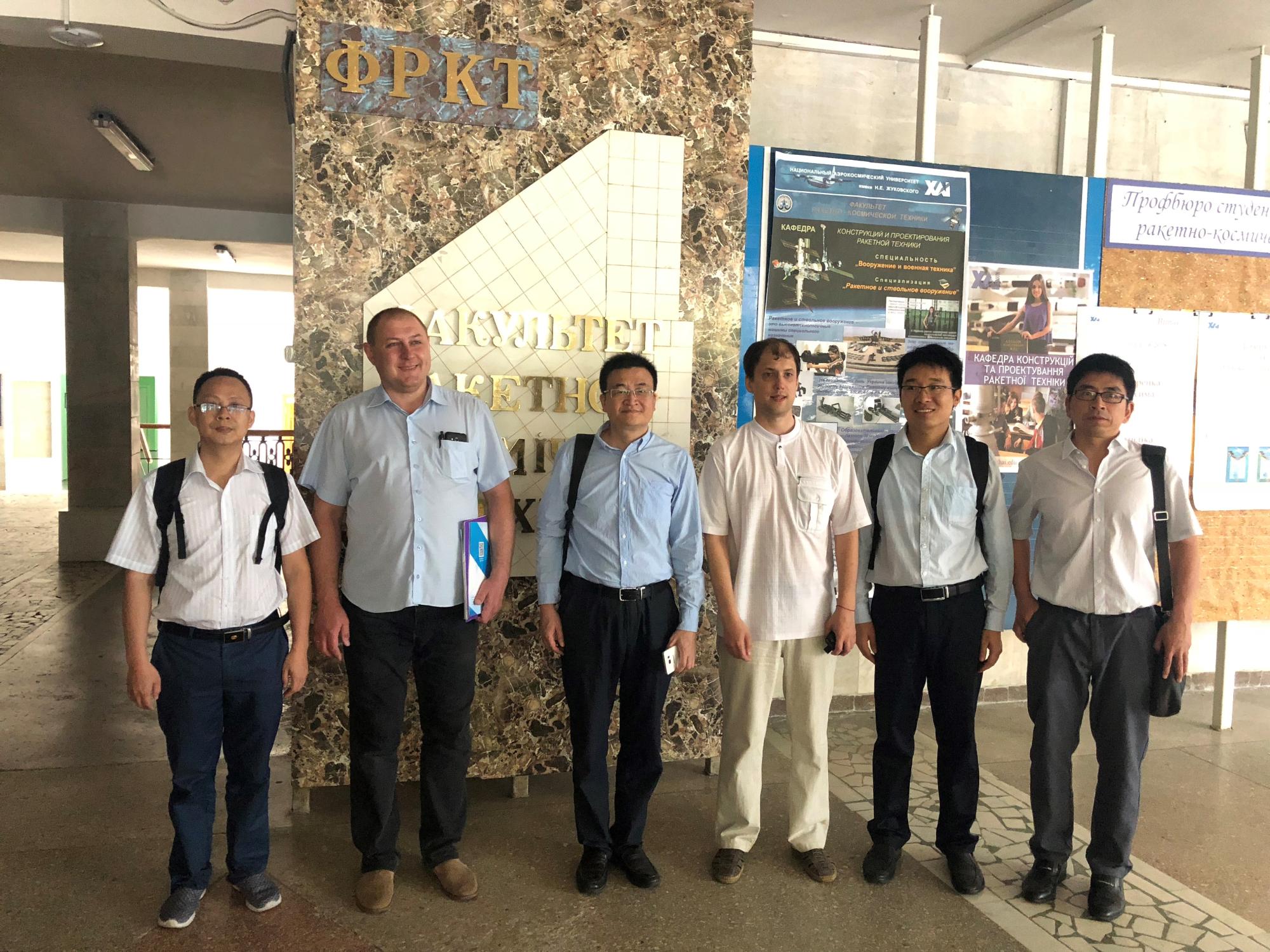 6月13日,哈尔科夫航空航天大学副校长Voronko V.V.,国际教育处处长Pakhnina O. M.接待了代表团一行,就学生培养、人才互访、科研合作达成初步意向。并在当日与哈尔科夫国立航天航空大学中国留学生座谈,随后系主任Plankovsky S.I.和Sorokin V.F.就所在院系进行了介绍,并带领参观了飞机工程系,航空发动机系,火箭和空间技术系等实验室,与多名负责进行实验室工作的教授进行了交流。