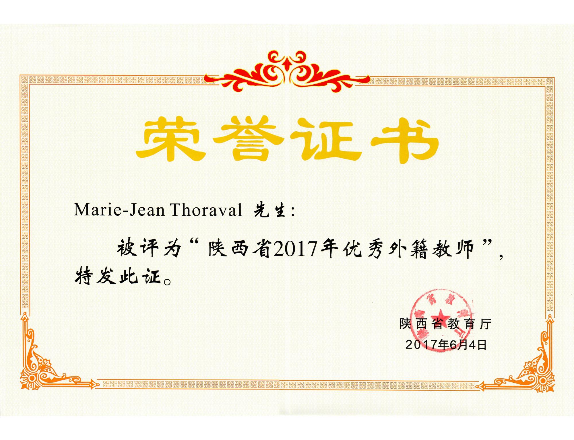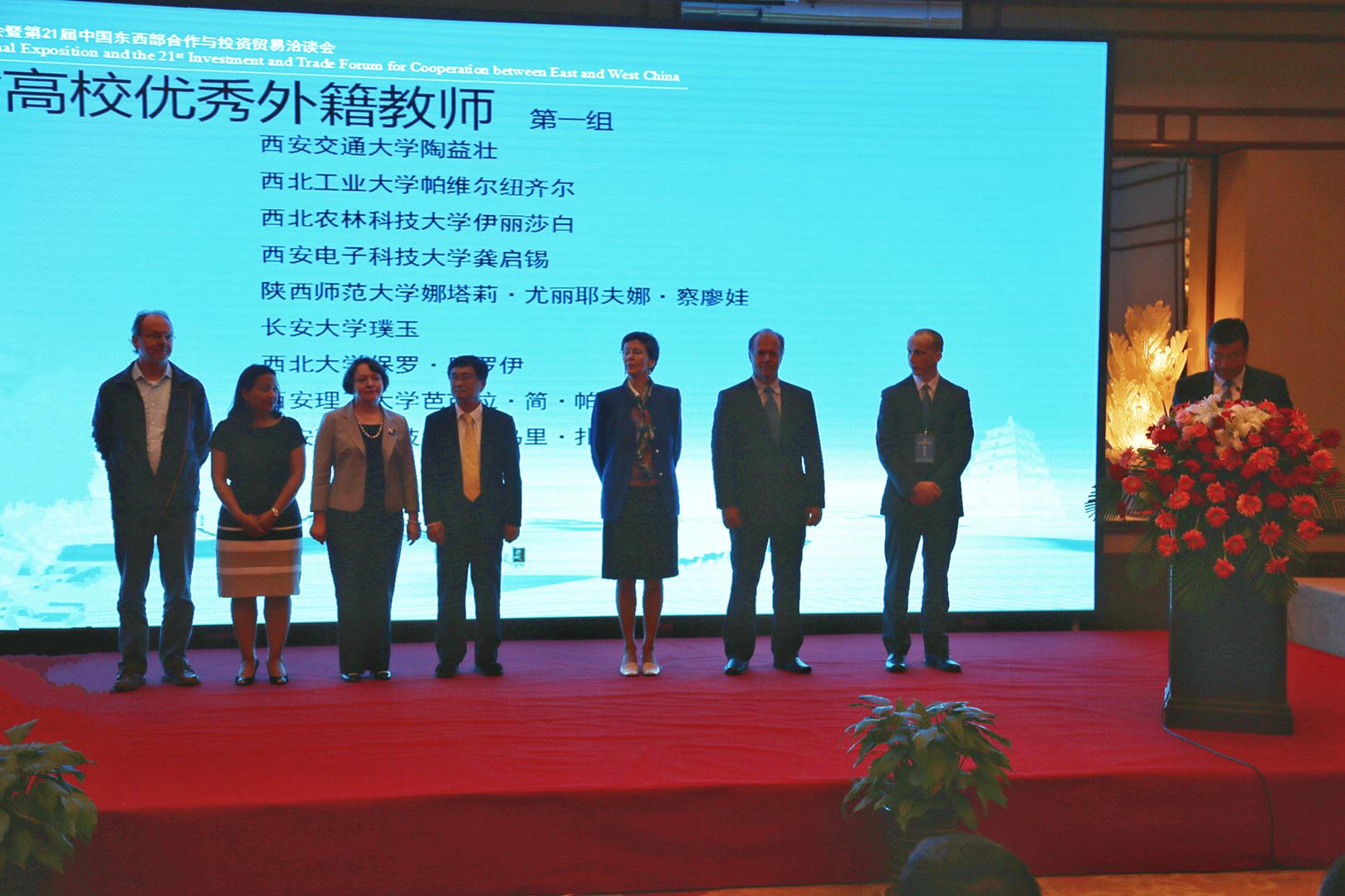 国际应用力学中心法国籍教授陶益壮(Marie-Jean THORAVAL)受邀出席开幕式,并获得“陕西省2017年优秀外籍教师”表彰,教育部国际合作与交流司司长许涛向陶益壮教授颁发了证书。