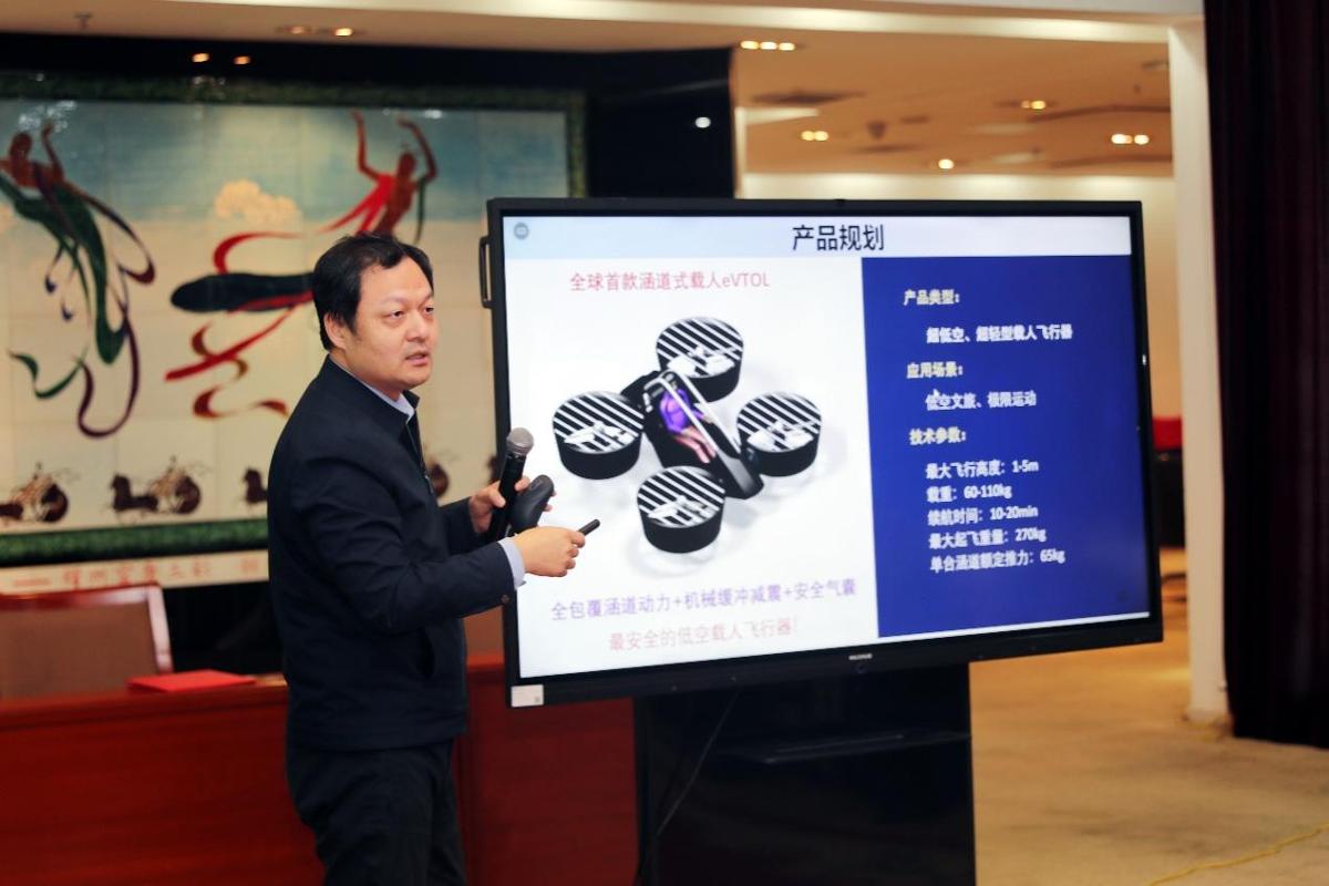 仪式期间,西安交大航天学院孙剑教授向与会人员详细介绍了多级电动涵道推力器的关键技术突破及研究成果。该创新技术已经迈出从实验室走向产业化的关键一步,成立了北京广翼航空科技有限公司,道恩集团为公司A轮领投方,融资规模达数千万元,主要用于产线建立、市场开拓以及电动涵道推力器飞行器的研发工作。双方将以共建研究院为契机,系统整合产学研用全链条资源,共同突破关键技术瓶颈,推动科技成果高效转化与产业化落地。