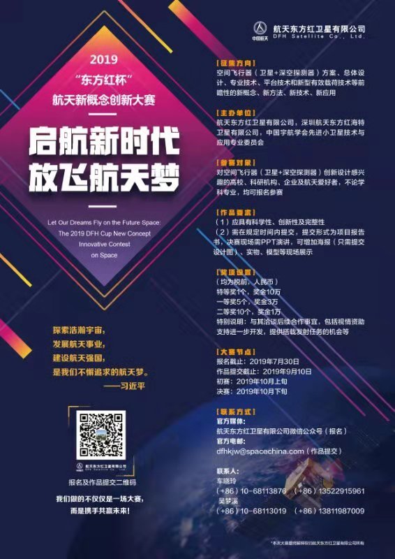 为促进航天技术与应用的发展,获取可能对未来航天技术发展产生影响的创新性理念,特推出本次大赛,邀您共绘航天梦。