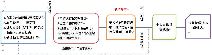 “三类人员”和获得博士学位超过3年的人员进站办理流程: